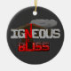 Ce ornement d'humour géologique suspendu présente le jeu de mots "Igneous is Bliss", une interprétation géologique de l'expression commune "Ignorance is Bliss". L'image représente un système igné, avec les lettres dessinées sous forme de roche grise et de mousson magma rouge et cristallin sous un volcan actif en éruption.