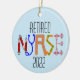 Infirmière retraitée ornement céramique '2022' sur le devant et un stéthoscope noir sur le dos.