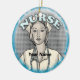 Retro Female personnalisée Infirmière ornement, t-shirts d'infirmière et vêtements d'infirmière enregistrés par ArtMuvz Illustration. Cadeaux d'infirmières, T-shirt d'infirmières, casquettes, sacs fourre-tout d'infirmières, ornements. Chemise infirmière, et vêtements infirmière, cadeaux. POUR PERSONNALISER ajoutez votre nom ou ajoutez du texte à la place. Customisez ce ornement d'infirmière féminine pour le rendre unique à vous ou pour donner en cadeau personnalisé