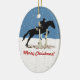 Joli ornement avec un cheval et cavalier sautant et vous souhaitant un Joyeux Noël! Un grand cadeau pour le cavalier dans votre vie.