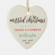 Cet ornement moderne et contemporain de Noël mariage de vacances comprend le mot "Joyeux Noël" dans une calligraphie en écriture noire simple et tendance avec un accent lunatique sainte mistletoe accent sur un arrière - plan blanc vanille. De l'autre côté, on retrouve une photo à fond plein recouvert d'une amande fleurie et le monogramme du couple en serif classique. Tout le texte et l'arrière - plan peuvent être changés en n'importe quelle couleur de votre choix. Illustration de fat*fa*tin. Facile à personnaliser avec votre propre message texte, nom, année, photo ou image. D'autres fonctions d'édition sont disponibles sur la page "modifier la conception". www.zazzle.com/fat_fa_tin www.zazzle.com/color_therapy www.zazzle.com/fatfatin_blue_knot www.zazzle.com/fatfatin_red_knot www.zazzle.com/fatfatin_mini_me www.zazzle.com/fatfatin_box www.zazzle.com/fatfatin_design www.zazzle.com/fatfatin_ink