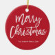 Joyeux Noël simple ornement d'arbre rouge et blanc avec texte changeant - vous pouvez changer le nom de famille et l'année.