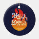 Ce joli ornement littéraire présente la citation de The Tempest de William Shakespeare "L'enfer est vide, et tous les diables sont ici" contre un feu orange sur un arrière - plan bleu. *Veuillez noter que le filigrane Zazzle qui apparaît dans l'aperçu du zoom n'apparaîtra PAS sur le produit imprimé final. © Bookish and Wonderful