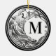 Conception tribale comportant un loup d'hurlement dans un croissant de lune avec des nuances de noir, de gris et de blanc. Customisez et personnalisez l'initiale. Par Paxdomino