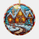 Décoration En Céramique Maison d'hiver de Noël style vitrail