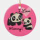 Un ours panda de maman et de bébé conçoivent avec un arrière - plan et un texte rose et des coeurs et un texte qui lit la maman d'amour d'I sur le T-shirts, combinaisons, tasses, cartes, autocollants, sacs, magnet, et un plus blancs.