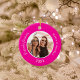 Personnalisez et ajoutez votre propre photo. Un arrière - plan rose vif. Ajoutez vos noms et votre année. Texte blanc.