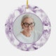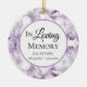 Honore ton bien-aimé disparu avec le joli ornement en céramique violet Hydrangea Flowers Watercolor Memorial Keepsaké Round. Personnalisez-le avec le nom du défunt, les dates de naissance/décès et l'image à l'envers. Cet élégant ornement d'hommage fleuri personnalisé présente une photo florale peinte numériquement aquarelle de pétales de fleurs d'hydrangée violet clair avec un arrière - plan blanc. Texte En Mémoire Amoureuse.