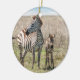 Décor en céramique avec l'image d'une femme zèbre et son veau debout dans la prairie.