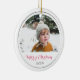 Ce simple ornement minimaliste de Noël présente votre photo préférée personnelle, ainsi que les mots "Joyeux Noël" dans la typographie de script moderne et tendance, ici en rose rougeâtre (la couleur peut être changée). Vous pouvez modifier le texte et toutes les couleurs si vous le souhaitez. L'ensemble est doux et lumineux. Joyeux Noël! ©Susanne Sachers - Sunny Mind Design 🌞