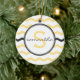 Motif de chevron de jaune de beurre et de gris de charbon de bois avec le nom et le monogramme.