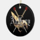 Des épées de pommel rubis traversent derrière un dragon doré sur un arrière - plan noir portant votre nom.