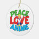 Un joli cadeau de décoration de Noël manga pour quelqu'un qui aime l'animation japonaise. Peace Love Anime en vert, rouge et bleu avec une belle écolière blonde dans un habit bleu marin.
