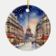 Ce décor de Noël personnalisable présente un portrait aquarellisé de Paris à l'heure de Noël.