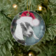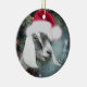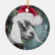 Jolie chèvre nubienne portant un chapeau de Père Noël rouge et blanc devant un arrière - plan de pin - le dos est simplement un biscuit en pain d'épices