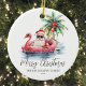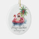 Découvrez l'esprit des vacances avec cet ornement unique de Noël avec un Père Noël détendu en lunettes de soleil, dans un flotteur flamand rose dans l'océan. Parfait pour ajouter une ambiance de plage à votre sapin de Noël, cet ornement est idéal pour ceux qui vivent dans des endroits tropicaux comme la Floride, Hawaii, ou les Bahamas, ou pour toute personne qui aime un thème de vacances côtier amusant. La scène comprend un palmier décoré de décorations, de douces vagues de l'océan et une petite île derrière Père Noël, le tout capturé dans un charmant style aquarelle rustique. Le mélange de polices simples et de typographie de script apporte une touche décontractée mais élégante, tandis que la date est affichée en bas pour marquer l'occasion. Une façon amusante et festive d'apporter du surf et du sable dans votre décor de vacances! Plage Funny Ornement En Céramique De Noël Avec Père Noël D'Été Dans Un Flamant rose Flottant Palm Tree Océan