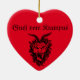 Salutations de Krampus ! Apportez un charme espiègle à votre décor de vacances avec ce ornement en forme de coeur avec une tête Krampus illustrée avec sa langue qui s'épuise, ainsi que les mots "Gruß vom Krampus" contre un arrière - plan vert vibrant. Retournez-le pour révéler le même design sur un côté rouge festif, ce qui en fait un morceau parfait pour n'importe quel thème de "Noël laid" ! Idéal pour célébrer l'esprit coquin de Krampusnacht et Krampuslauf, cet ornement ajoute une touche d'horreur à votre sapin de Noël. Il fait un cadeau fantastique pour la bonne personne qui aime un peu de peur pendant la saison des fêtes!