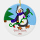 Cet ornement délicieux de Noël montre un pingouin heureux. Votre nom de famille et l'année est imprimé sur ce souvenir de famille. Rend un cadeau merveilleux de Noël pour quelqu'un spécial ! Pour voir des produits-Svp plus grands visiter mon magasin "la princesse de Hungarican", sur Zazzle ou aller : www.zazzle.com/hungaricanprincess*