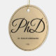 Un ornement pour un doctorat avec une tonalité or (non feuille) et un schéma de couleur noire. Il montre le diplôme, le nom et l'année. Customisez simplement cet ornement, ajoutez-le à votre panier et gardez un souvenir de cette réalisation majeure. Élégamment Simple Nom Gold PhD Diplôme Ceramic Ornament