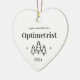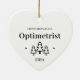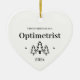 Premier Noël comme ornement cardiaque optimétriste. Élégante porcelaine céramique ornements de vacances en blanc avec lettrage noir. Avec des arbres de Noël et des étoiles.