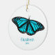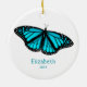 Ce joli ornement à thème papillon présente un seul joli papillon turquoise / bleu turquoise, noir et blanc avec nom personnalisé et année commémorative - par katz_d_zynes