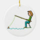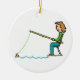 La conception de la pêche montre un pêcheur patient assis près du flotteur d'observation de l'eau fixé à l'extrémité de la canne et de la ligne.