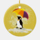 Cute Penguin with Colourful Umbrella on a Ceramic Christmas Tree Ornament