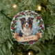 A beautiful, ultra-detailed Christmas design featuring a realistic portrait of the breed centered within a soft, festive winter frame. This elegant design includes pine branches, red berries, and snowflakes against a snowy backdrop, illuminated by warm holiday lighting. The balanced, round composition includes clear space below the dog for customization.