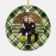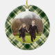 Personnalisez ce décor de Noël personnalisé et festif avec une photo de famille préférée de chaque côté, encadrée par une bordure verte en plaid.