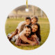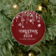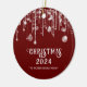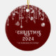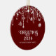 Les lumières à cordes rouges et blanches de la photo scintillent l'ornement de Noël avec le nom de famille pour une fête de Noël festive.