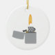 Ce design magnifiquement détaillé montre un briquet argenté avec une grande flamme.