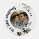 Célébrez l'amour et les nouveaux débuts avec cet ornement photo personnalisé "Notre premier Noël engagé". Conçu dans un style céramique ronde intemporelle, ce keepsar présente une calligraphie élégante, une verdure hivernale festive, des pinecones et des fleurs blanches. L’avant affiche une photo fiançailles personnalisée avec la phrase "Notre premier Noël engagé" avec l’année, tandis que l’arrière offre de l’espace pour une deuxième photo et les noms du couple, ce qui en fait un trésor de vacances vraiment significatif et unique. Parfait comme cadeau de fiançailles, cadeau de Noël à conserver ou décor de vacances pour les couples, cet ornement est un moyen sincère de commémorer votre fiançailles et le début de l'éternité.