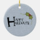 Aimer un couple de neige célèbre leur premier Noël ensemble. Tous deux portent des rayures rayées et des casquettes. Le front dit First Christmas Together et l'année. Le dos dit Joyeuses Fêtes et a quelques saints & baies.