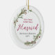Célébrez votre premier mariage de Noël avec cet élégant ornement de couronnes miniatures. La couronne a des baies rouges délicates avec des accents de feuillage vert. Facile à customiser avec vos noms et votre année sur le devant et votre photo sur le dos.