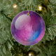Sur fond de bleu royal et de nuages roses chauds complexes comme des galaxies lointaines, se trouve une seule orbe de verre lisse avec une fractale tourbillonnante suspendue à l'intérieur.