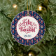 Ce fabuleux ornement de Noël folk art bleu ronde en céramique avec un motif d'anges, noix, étoiles et cadeaux qui dit Joyeux Noël en espagnol "Feliz Navidad" et a l'année aurait l'air stupéfiant sur votre arbre de Noël. C'est tellement festif et va avec n'importe quel décor de Noël, c'est rustique mais rétro et moderne mais traditionnel ! Obtenez certains comme cadeaux pour les proches...ils vont adorer !