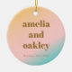 Commémorez votre journée spéciale avec cet Ornement Mariage Retro Summer Beach Vibes, avec un dégradé doux de pastel qui saisit l'essence d'un coucher de soleil serein sur la plage. Personnalisez-le avec vos noms, votre date de mariage et une photo chère pour créer un souvenir unique qui célèbre votre amour. La typographie d'inspiration rétro et le doux mélange des couleurs font de cet ornement un complément élégant et significatif à votre décor de vacances ou un cadeau de soin pour les proches. Parfait pour se souvenir de votre mariage avec une touche de nostalgie.