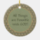 Vous avez plusieurs options ici : 1) Achetez l'ornement tel quel. 2) Remplacez notre texte par défaut par un sentiment personnel. 3) Supprimez notre texte, notre forme et notre motif pour révéler une zone vierge et de couleur solide prête à recevoir une image, un salut, un passage biblique ou tout autre texte de votre choix. Pour choisir une nouvelle couleur arrière - plan, reportez-vous aux teintes de coordination suggérées sur la carte postale Palette de couleurs pour cette image. Les cartes postales Color Palette se trouvent dans la COLLECTION associée à une image et dans la COLLECTION spéciale consacrée uniquement aux palettes de couleurs. Ou, 4) "Copiez" le devant "Sélectionner(ing) tout" et "Coller" sur le dos. + Femme, Mère, Veuve, Nonne—St. Rita de Cascia (1386-1457) a connu de nombreuses étapes de la vie. La vie, cependant, avait un moyen de la mettre entre le marteau et l'enclume. Pour cette raison, elle est vénérée comme patronne de causes perdues et impossibles. Consacrée à la Passion du Christ, elle a reçu un stigmate partiel à l’âge de soixante ans : une blessure chronique au front comme d’une couronne d’épines qui a saigné pendant les quinze années suivantes. C'est son attribut principal. + Fête : 22 mai + Image Source (M 015) : Antique image de St. Rita [de Cascia] d'un tirage dévotionnel de 1904 en chromolithographie initialement publié par A. & M. B. [Albrecht & Meister of Berlin], Allemagne. De la collection d'éphémères religieux du designer. + Alors que le libellé varie quelque peu de l'Évangile à l'Évangile, notre citation par défaut qui est dans le domaine public apparaît dans Matthieu 19:26, Marc 10:27, et Luc 18:27.