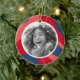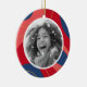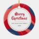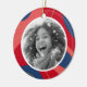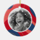 Décor de Noël avec photo personnalisée et bordure rouge, rose et bleu foncé. Accueil personnalisé, nom de famille et année sur le dos.
