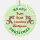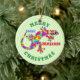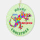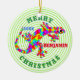 Une grande salamandre couverte d’arc-en-ciel souriante est tout à fait amusante pour les vêtements de Noël personnalisés de petit garçon, qui seront précieuses pendant des années. Joyeux texte de salutation de Noël a des lunettes vertigineuses sur le dessus. Les cercles concentriques Arrière - plans ou verts apportent une touche parfaite. Le nom et l’année de l’enfant sur le devant peuvent être personnalisés. Le dos de l'ornement a deux salamandres avec du texte qui peut être customisé comme vous le souhaitez. Jouissez d'un coup d'oeil à d'autres ornements de Noël de garde dans mon magasin sur le site de Zazzle. ©AnuraDesignStudio Tous droits réservés