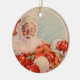Un ornement de Noël avec le Père Noël à travers une tempête hivernale dans son traîneau le soir de Noël.