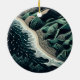 Serene Shores: This stunning top-down illustration the harmony of land and sea, featuring waves wgently breaking on sandy beaches with lush green mountains in the background. Rendered in soothing shades of dark blue-green, the artwork evokes a sense of tranquility and balance. The intricate details of the ocean’s patterns meeting the shore, paired with the trees lining the water’s edge, enhances the peaceful atmosphere. Created in a woodcut print style with simple lines and a flat design, the piece is reminiscent of hand-drawn animation, offering a timeless, serene depiction of nature's beauty.