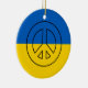 Un ornement en céramique avec le drapeau de l'Ukraine et un symbole de paix
