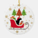 Black Labrador Silhouette Arnament en céramique de Noël pour les fans du Labrador. Black Labrador assis sur Père Noël Sleigh dans la forêt. Créé par Naomi Ochiai.