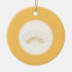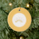 Ce design est orné de "Anniversaire" aux couleurs de pointes jaunes et noires. Petits coeurs comme des pointes. Un contexte doré représente un anniversaire d'or. Un opaque à plumes blanches est inséré au centre de l'ornement. Ce ornement fera un beau cadeau à votre être aimé pendant 50 ans de mariage. Elles sont disponibles en formes assorties. Customisez avec vos propres informations sur le dos de l'ornement.