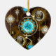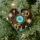 Turquoise lenses with antique watch with brass gears and golden keys on rusty, brown background. Steampunk style.