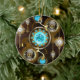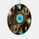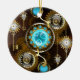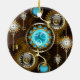 Turquoise lenses with antique watch with brass gears and golden keys on rusty, brown background. Steampunk style.