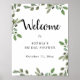 Cette charmante affiche de bienvenue pour une baby shower dispose de feuilles vertes minimalistes peintes à l'aquarelle sur un fond blanc épuré. Le texte serif moderne mélangé à une typographie script tendance ajoute une touche de fraîcheur pour rendre ce panneau parfait pour une baby shower rustique, minimaliste ou élégante avec une touche botanique en plein air.