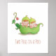 Une illustration mignonne de deux bébés habillés de petits chapeaux de lutin verts sortant d'une cosse de pois. La légende indique "Deux pois dans une cosse" que vous pouvez modifier avec les noms des jumeaux. Idéal comme pièce décorative murale pour la chambre de naissance des jumeaux.