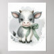 Vache mignonne en noir et blanc avec une touche de couleur sauge sur le ruban.